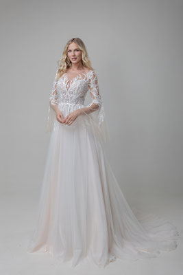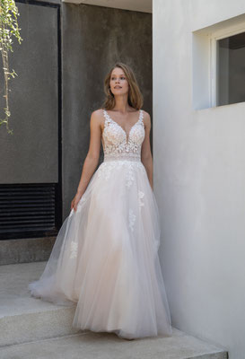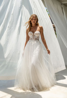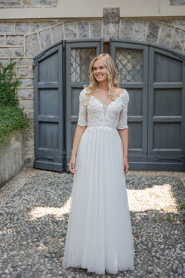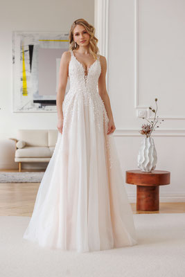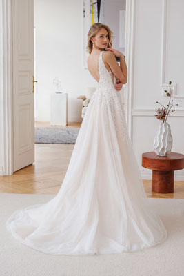 Die klassische A-Linie erfreut sich großer Beliebtheit und zaubert mit einem figurbetonten Oberteil und einem weit