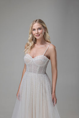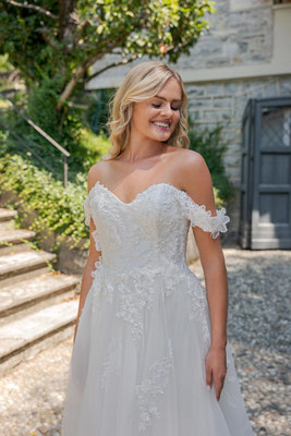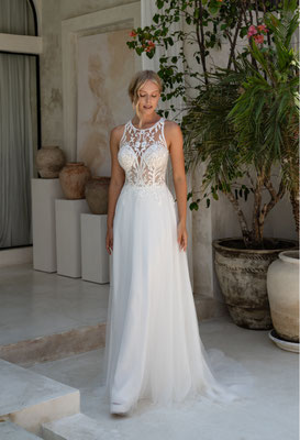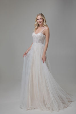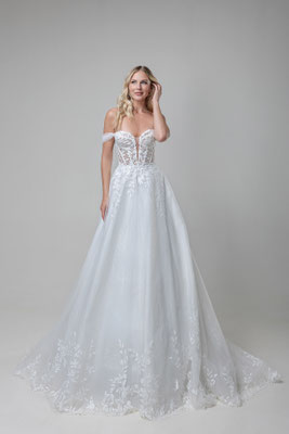 ausgestellten Rock den perfekten Bridal-Look, wobei die Form an den Buchstaben "A" erinnert.